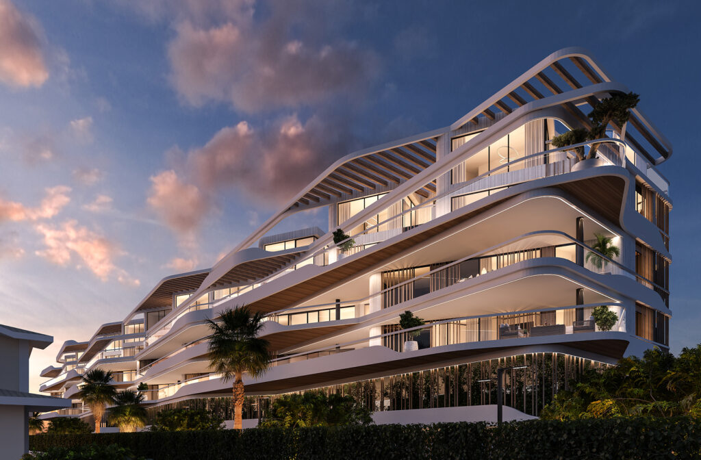 Se crea una pieza con una fachada muy dinámica, que se modela para buscar la mejor orientación hacia sus maravillosas vistas al mar Mediterráneo. Una pieza ondulante que de alguna manera es modelada por la brisa del mar.