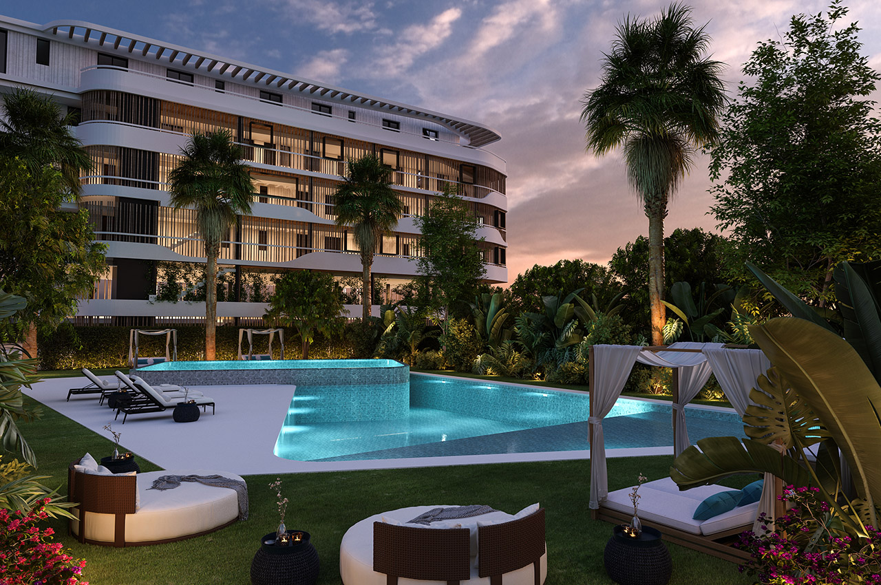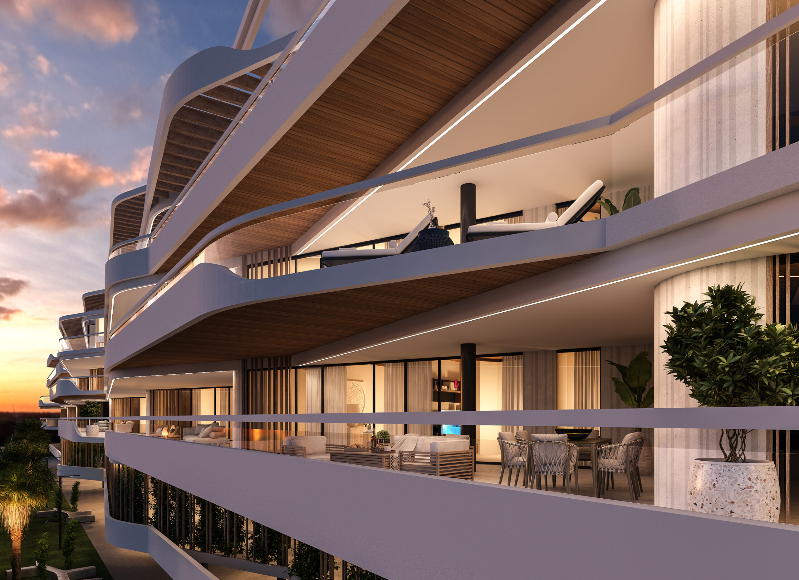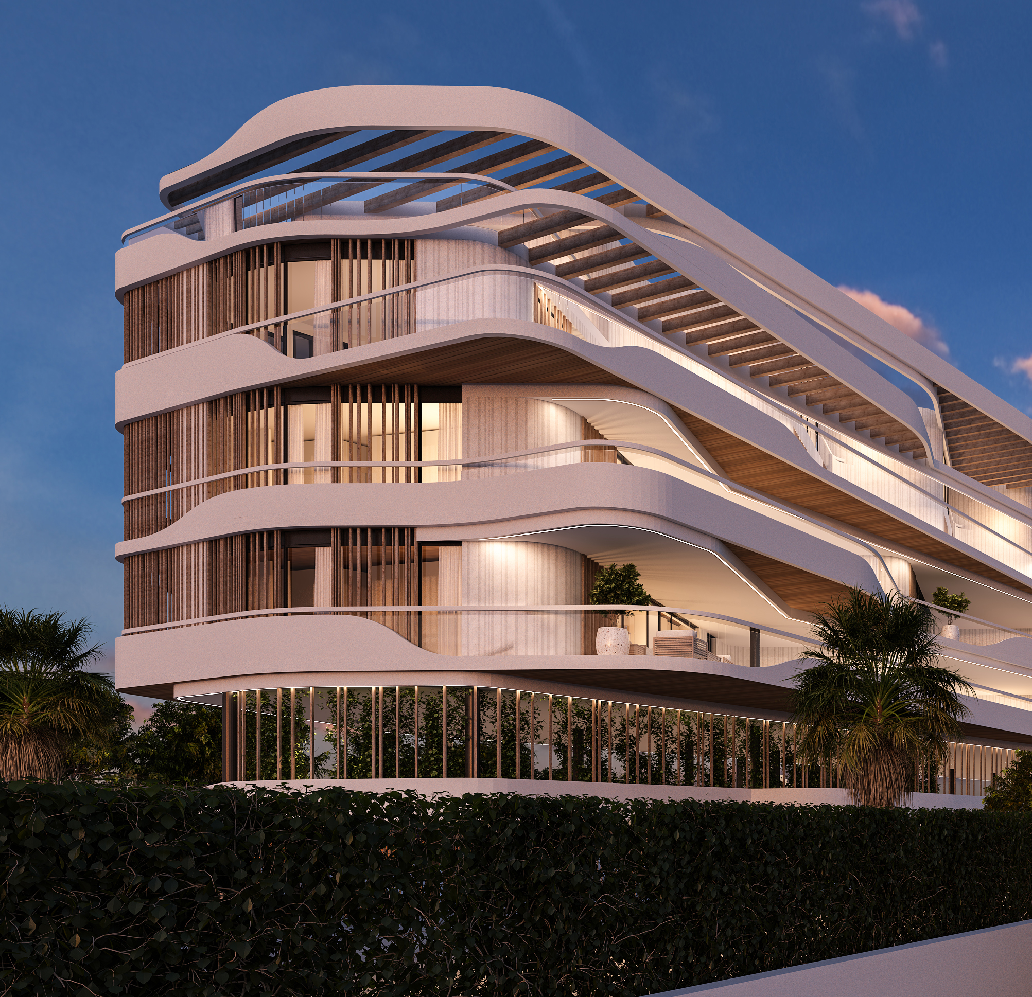 Una pieza de carácter escultórico y dinámico, cuyas fachadas parecen danzar suavemente al ritmo de la brisa marina. Su forma alargada se acentúa y se celebra, convirtiéndose en un hito que dialoga con el paisaje urbano.